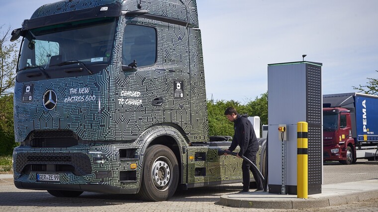 Bei einem internen Test in Wörth am Rhein (Rheinland-Pfalz) haben Entwickler von Mercedes-Benz Trucks einen Elektro-Lkw bei einer Leistung von 1.000 kW geladen. Dabei wurde der neue definierte Ladestandard Megawatt Charging System (MCS) genutzt.